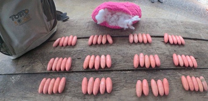 Durante la inspección a los equipajes y el tacto a un corazón de peluche que era transportado en un bolso, se identificaron elementos extraños que llevaron a un registro minucioso, descubriendo 59 cápsulas de pasta base de cocaína, forradas con esperma, esto para evitar ser detectadas por el olfato canino.