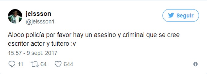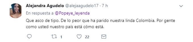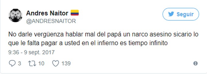 El comentario desató la furia de los internautas quienes han respondido al tuit con numerosos insultos.