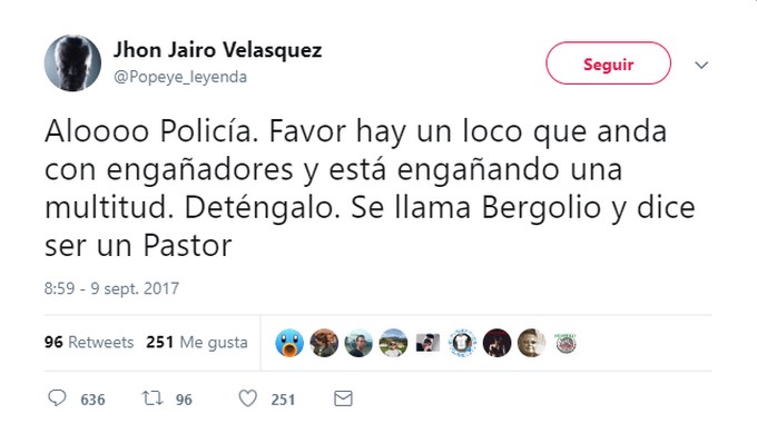 En el mensaje el ex sicario dijo que el papa Francisco es un “loco” y es un “engañador”, además pide en modo de “broma” que la policía debería capturarlo.