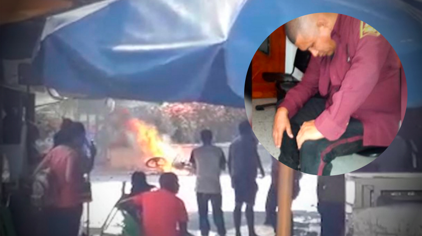 Tal y como planteó el hombre que resultó herido en una de sus piernas, al cumplir su labor los supuestos estudiantes lo golpearon, le quitaron el radio de comunicaciones y el celular, y posteriormente le prendieron fuego.
