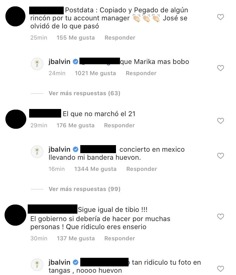 El cantante J Balvin se cansó de los criticones en Instagram y les respondió con groserías como “marika” y “huevón”.