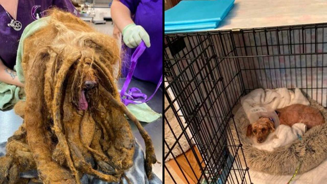 El canino llamado ‘Pierre’ cargaba con 3.6 kilos de pelo con restos de heces y orina, que tardó más de dos horas para retirarse completamente.
