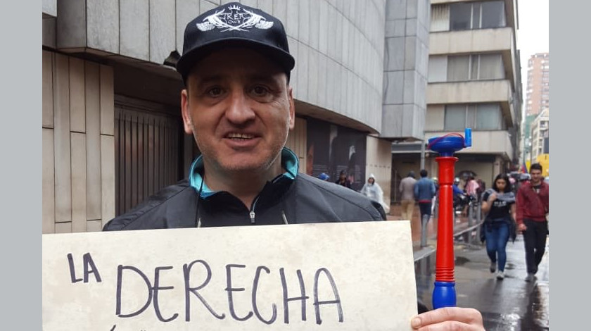 El actor Róbinson Díaz salió a marchar y mientras protestaba pacíficamente se dejó retratar con este cartel con contenido sexual, con el que muchos se escandalizaron.