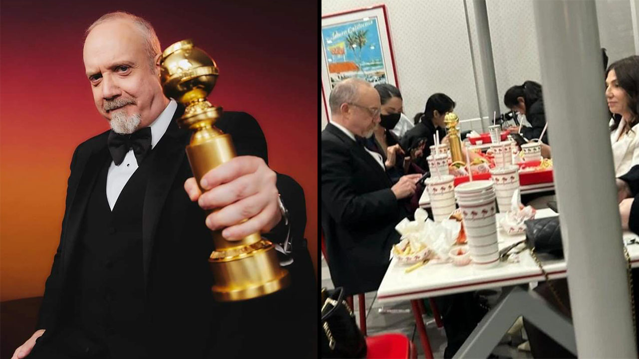 El actor ganador del Globo de Oro como “Mejor Actor de Película Musical o Comedia“, Paul Giamatti, cerró su “noche de oro” marcando tendencia en las redes sociales. Luego de su emotivo discurso agradeciendo al director Alexander Payne, al tenerlo en cuenta de nuevo en la película “Los que se quedan“. Giamatti expresó que no se considera un gran actor pero algo ve en él Payne. Se destaca que el valor de la película de comedia, drama y humor negro es resaltar el valor de los maestros y respetar las diferencias. Al ser ganador de Globo de Oro va por los Premios Oscar entre otras galas; así que la celebración de Paul Gimatti es de aplausos por internautas frente al glamour de los trajes, fotos, fiestas y entrevistas, quedando este instante. “Comiendo una hamburguesa” sin el asedio de la prensa y paparazzis esta vez les ganaron las redes sociales.