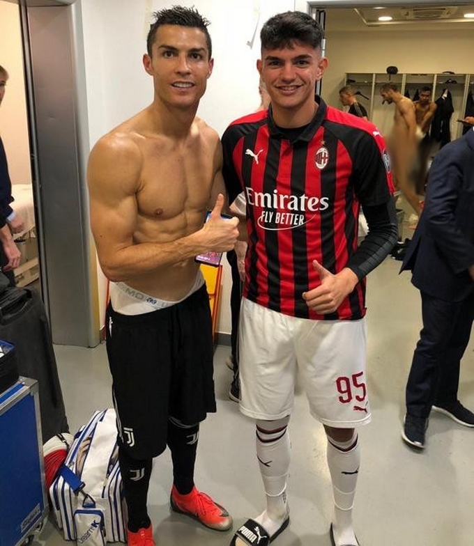 Por culpa de una fotografía que le pidió el joven talento del Milan, Raoul Bellanova, a Cristiano Ronaldo en los camerinos luego de culminado el encuentro, el defensa de la Juventus Giorgio Chiellini quedó malparado al aparecer desnudo en la parte posterior de la imagen.