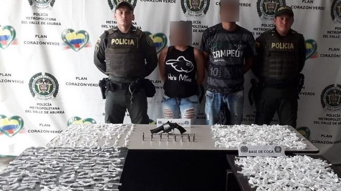 La Policía Metropolitana del Valle de Aburrá confirmó que logró capturar a una pareja en el municipio de Itagüí, que tenía en su poder un arma de fuego y 1.000 dosis de estupefacientes.
