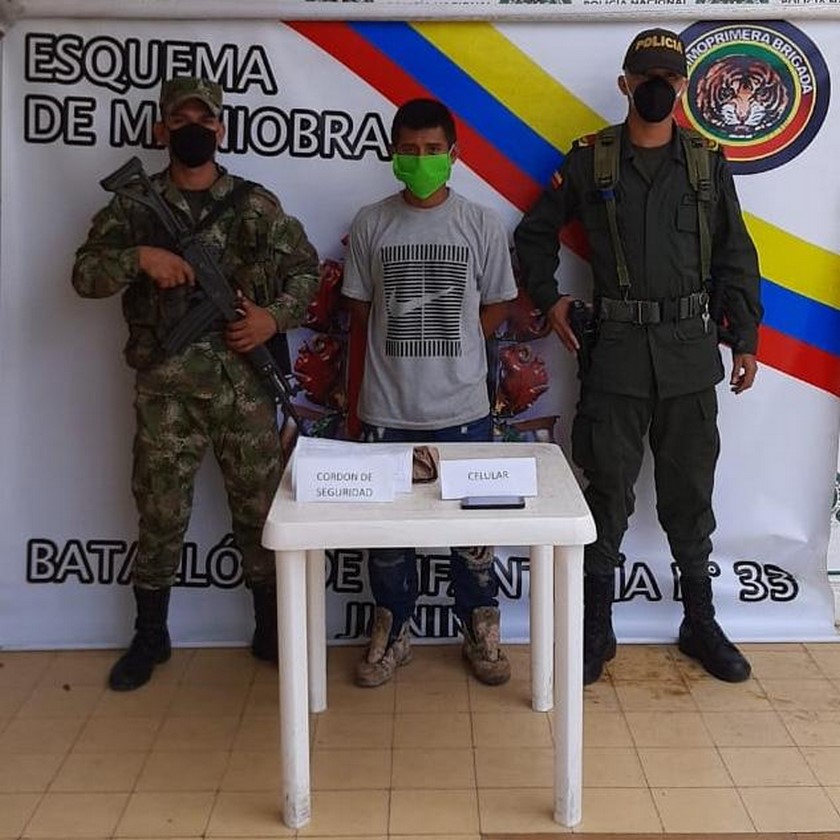 “Durante la ofensiva militar se incautaron 24,5 metros de cordón detonante y un celular táctil. El capturado fue puesto a disposición del juez de control de garantías, quien determinó la legalidad de la captura y ordenó medida de aseguramiento privativa de la libertad”, detalló el Ejército.