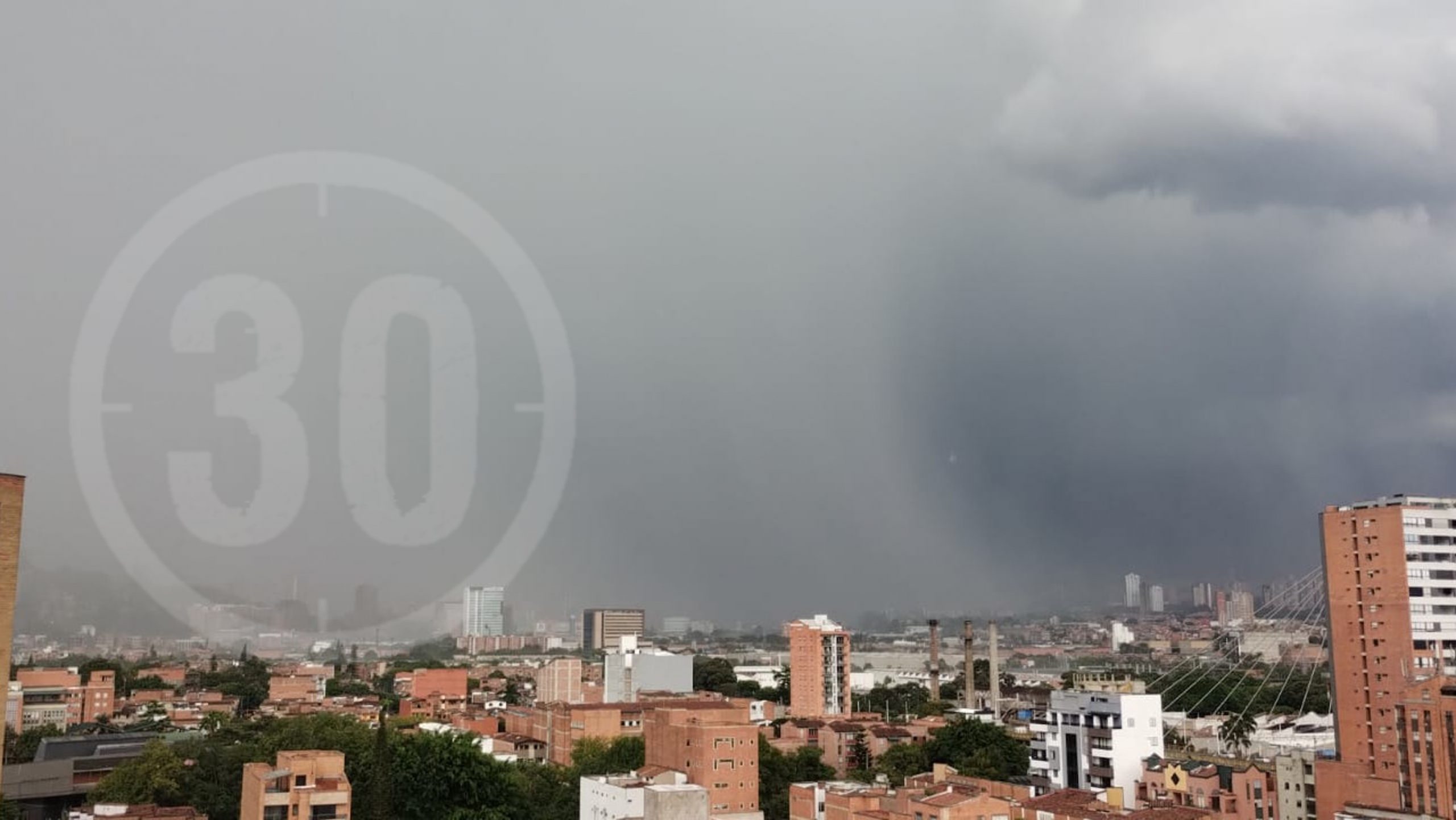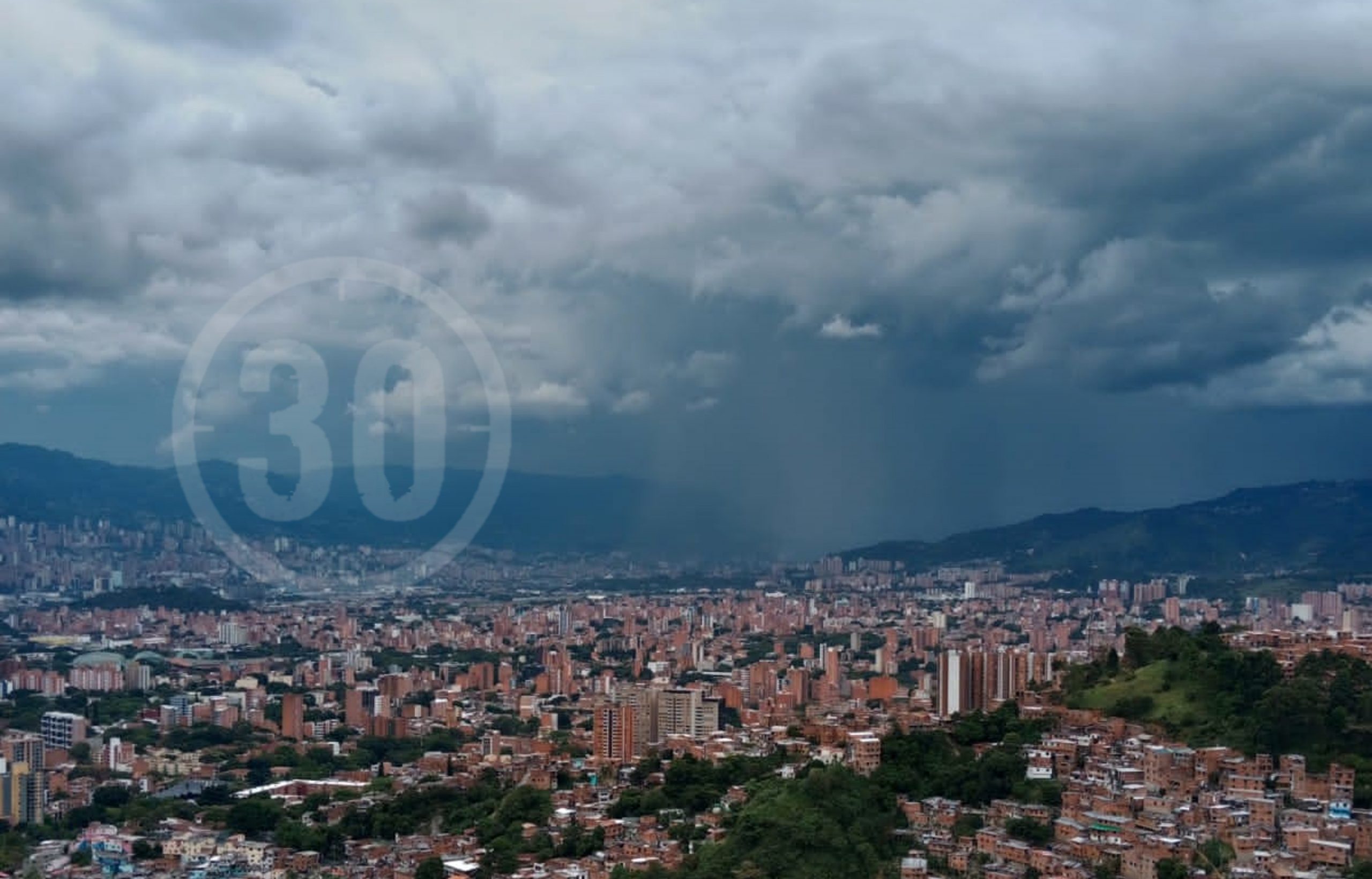 Fuerte aguacero en Sabaneta visto desde Robledo. Foto: Minuto30.com