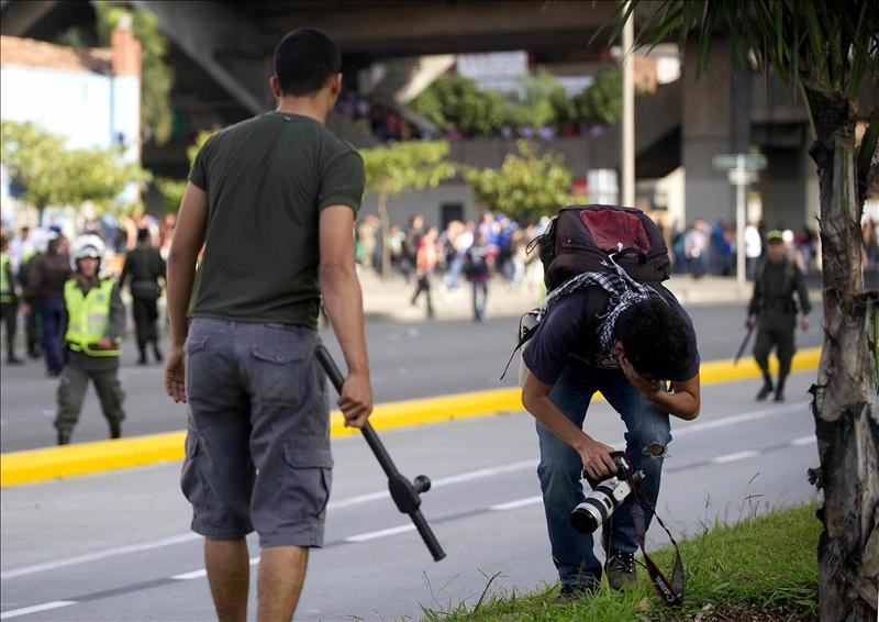 “Estábamos tomando fotos y los policías nos dijeron que no tomáramos más, que nos fuéramos que nos iban a romper la cámara”, relató Luis Eduardo Noriega, fotógrafo al servicio de la Agencia Efe.