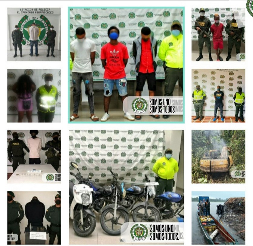 Asimismo, se dieron 11 capturas, para destacar la captura de 4 integrantes de estructura delincuencial ‘Los mexicanos’, 3 de ellos por hurto calificado y agravado, y la captura de alias ‘Brayitan’ sujeto solicitado con Circular Azul de interpol y capturado en Quibdó por los delitos de concierto para delinquir agravado y extorsión agravada.