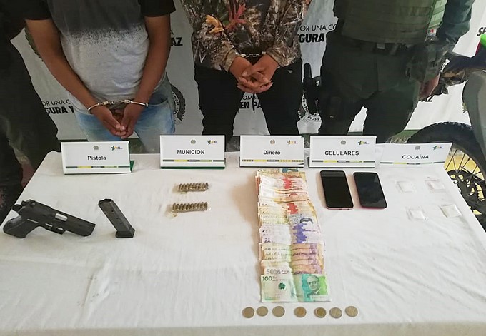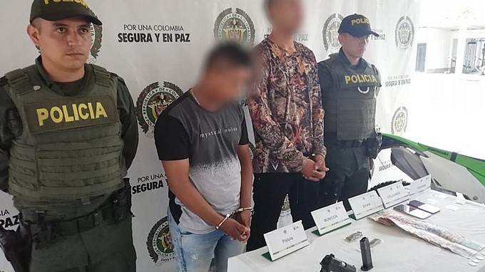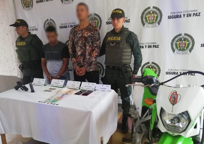 El Departamento de Policía de Antioquia informó que realizaron la captura de dos quienes se movilizaban en una motocicleta cobrando extorsión en el sector comercio en Puerto Claver, El Bagre.