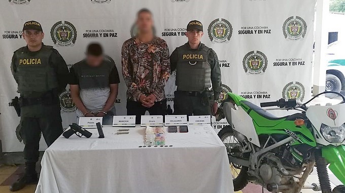 El Departamento de Policía de Antioquia informó que realizaron la captura de dos quienes se movilizaban en una motocicleta cobrando extorsión en el sector comercio en Puerto Claver, El Bagre.