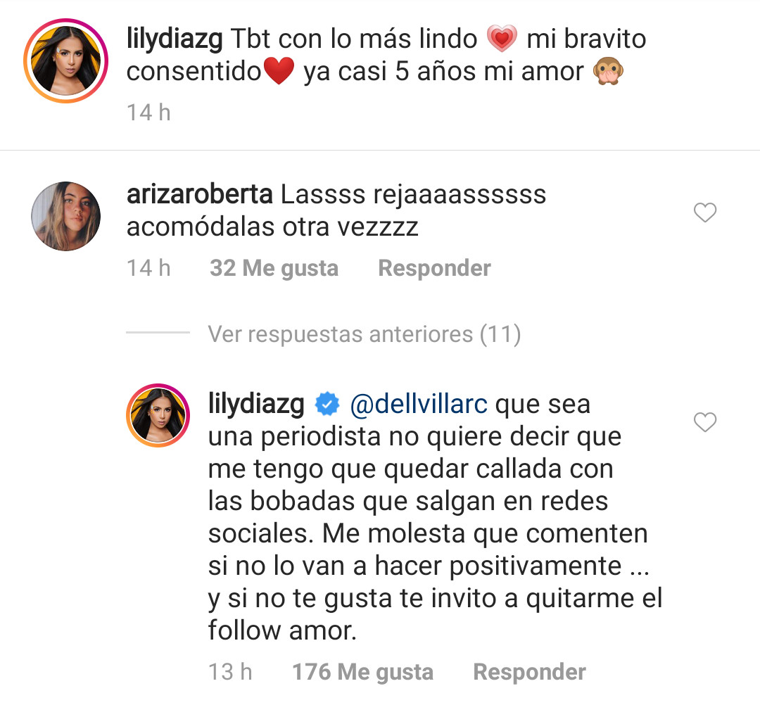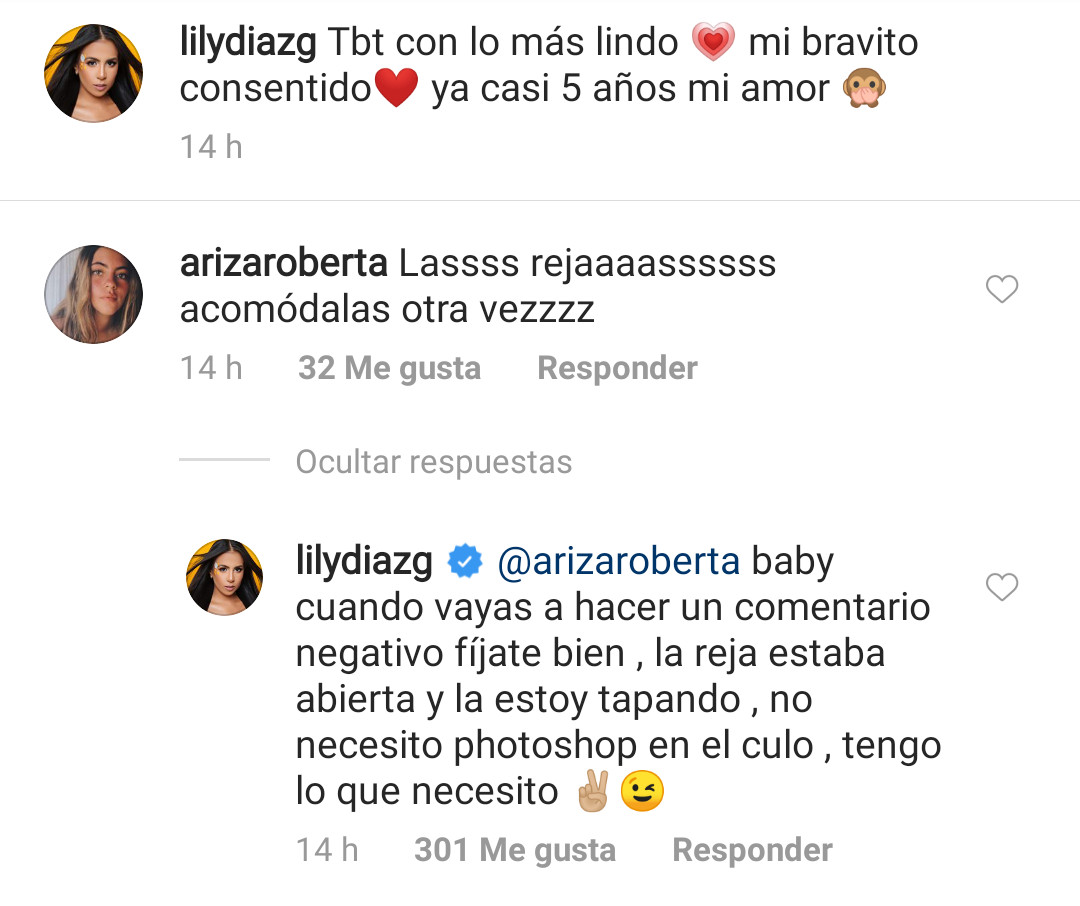 Todo iba muy bien hasta que una se sus seguidoras le hizo semejante comentario en el post. “Las rejas, acomódalas otra vez”. De inmediato Lili le respondió a la chica y la invitó a que la deje de seguir.