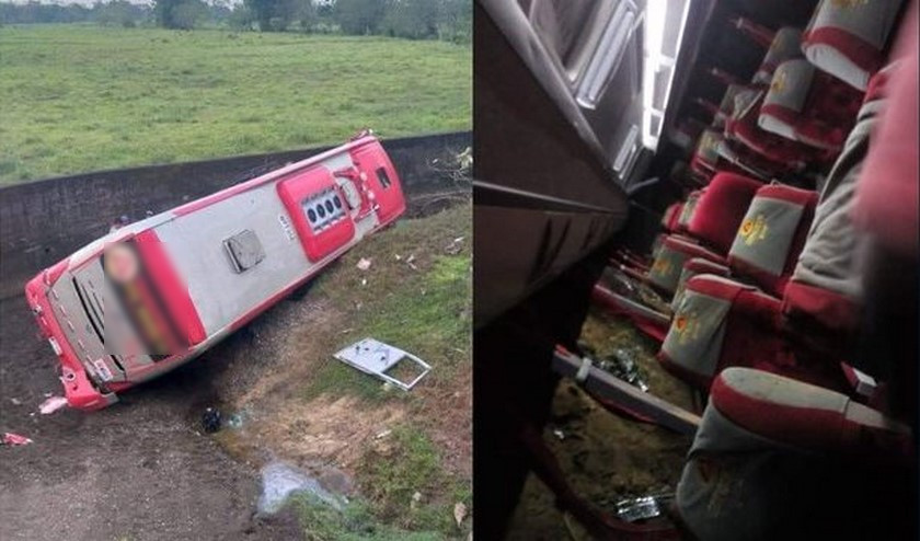 Pocas horas más tarde, en la madrugada de este martes 19 de noviembre, se presentó otro accidente en el kilómetro 4 de la misma vía, este fue protagonizado por un bus de servicio público que colisionó contra un semoviente, perdiendo el control del vehículo y terminando volcado al lado de la carretera, 14 personas resultaron lesionadas.