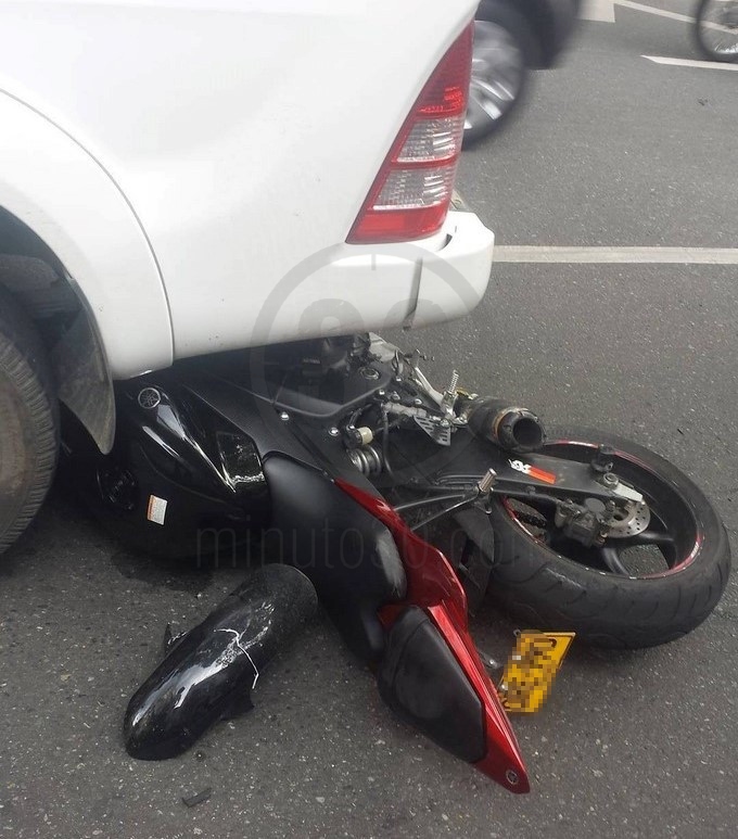 El hombre y la motocicleta, según reporte de un ciudadano, quedaron debajo de un carro que estaba esperando a que el semáforo pasara a verde.