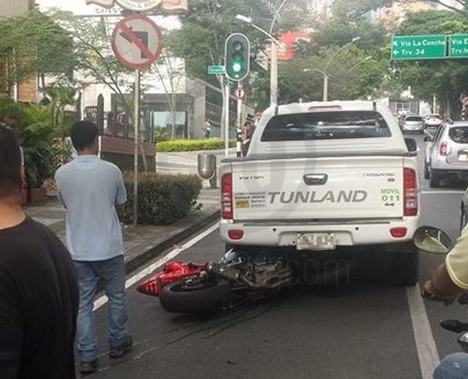 Hacia las 4:30 de la tarde se presentó en la calle 10 con carrera 36, en el Poblado, un accidente de tránsito en el que se vio involucrado un motociclista, quien al parecer conducía con exceso de velocidad.