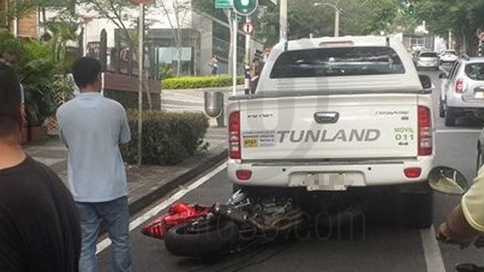 El hombre y la motocicleta, según reporte de un ciudadano, quedaron debajo de un carro que estaba esperando a que el semáforo pasara a verde.