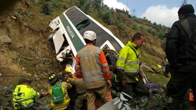 De acuerdo con las autoridades, el vehículo rodó por un abismo y un uniformado perdió la vida. Al parecer, hay varios heridos.