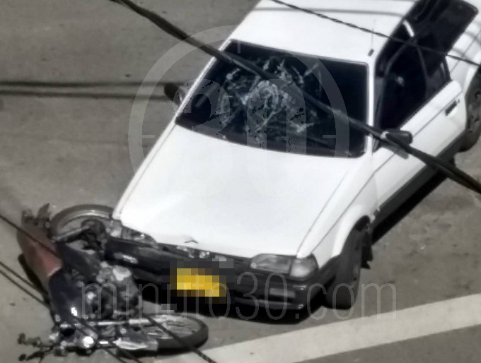 Según los testigos una motocicleta y carro que conducían en sentidos opuestos, giraron hacía el mismo sentido y se dieron de frente.