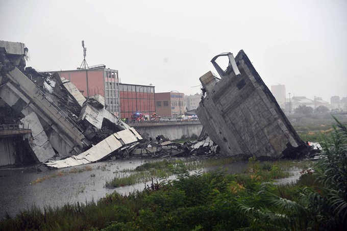 El siniestro ocurrió en el puente Morandi, de 1.182 metros de longitud y una altura de 90 metros, y del que se vino abajo un tramo de dos carriles de unos cien metros de longitud, sepultando bajo los escombros a varios vehículos.