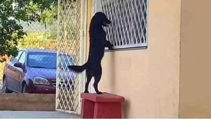 Viral se hizo este perrito después de asomarse por la ventana de un aula de clase para encontrar a su amo en México.