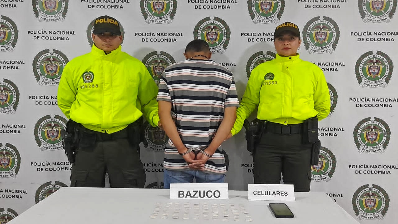 Al sujeto se le incautaron 1 dosis de cocaína, 28 dosis de bazuco y 59 gramos de marihuana.