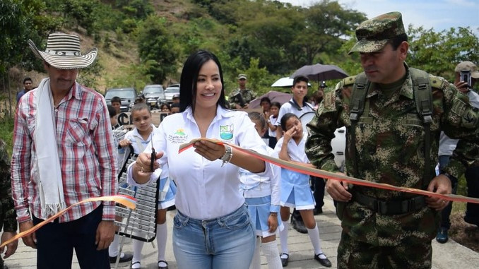 La inauguración estuvo presidida por la alcaldesa Alexandra Sánchez Marín, el brigadier general Juvenal Díaz Mateus, comandante de la Cuarta Brigada, autoridades de la región y habitantes del municipio, quienes presenciaron la construcción de la obra.