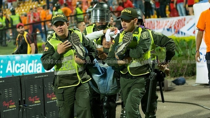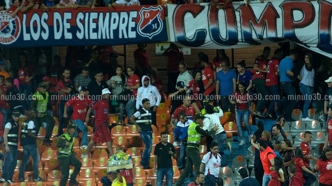 Minuto30.com .- La noche de este sábado 5 de marzo, poco antes de concluir la primera parte del partido que disputaban el Deportivo Independiente Medellín y el Deportivo Cali en el Estadio Atanasio Girardot de la capital antioqueña, se presentaron disturbios en las tribunas. Al parecer el hecho se presentó luego de que algunos hinchas […]