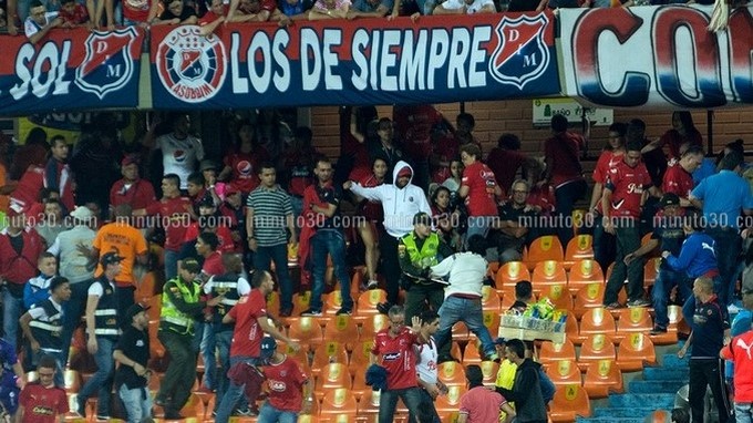 Minuto30.com .- La noche de este sábado 5 de marzo, poco antes de concluir la primera parte del partido que disputaban el Deportivo Independiente Medellín y el Deportivo Cali en el Estadio Atanasio Girardot de la capital antioqueña, se presentaron disturbios en las tribunas. Al parecer el hecho se presentó luego de que algunos hinchas […]