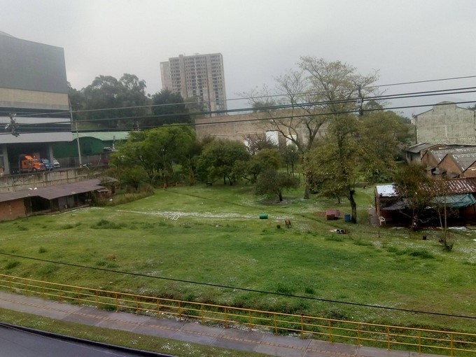 Así se vio la tarde de granizo por el Parque Logístico 97b Sur, en el sector La Tablaza del municipio de La Estrella.