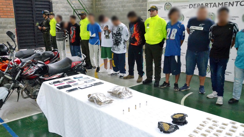 “En compañía de ellos, 17 personas más serían los responsables de distribuir y comercializar sustancias estupefacientes en el municipio de la Pintada y localidades aledañas a este, donde buscaban consolidar el monopolio de las rentas criminales derivadas del tráfico de estupefacientes a través del outsourcing con el Clan del Golfo”, detalló la Policía.