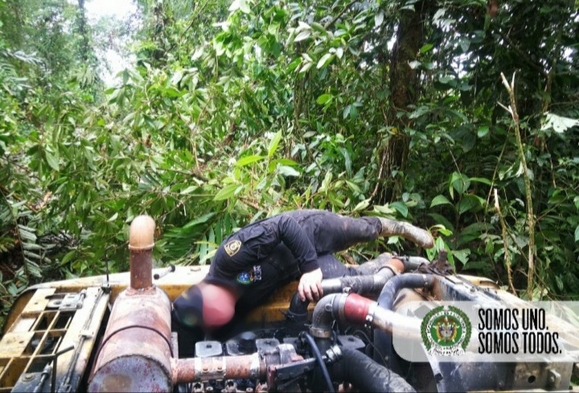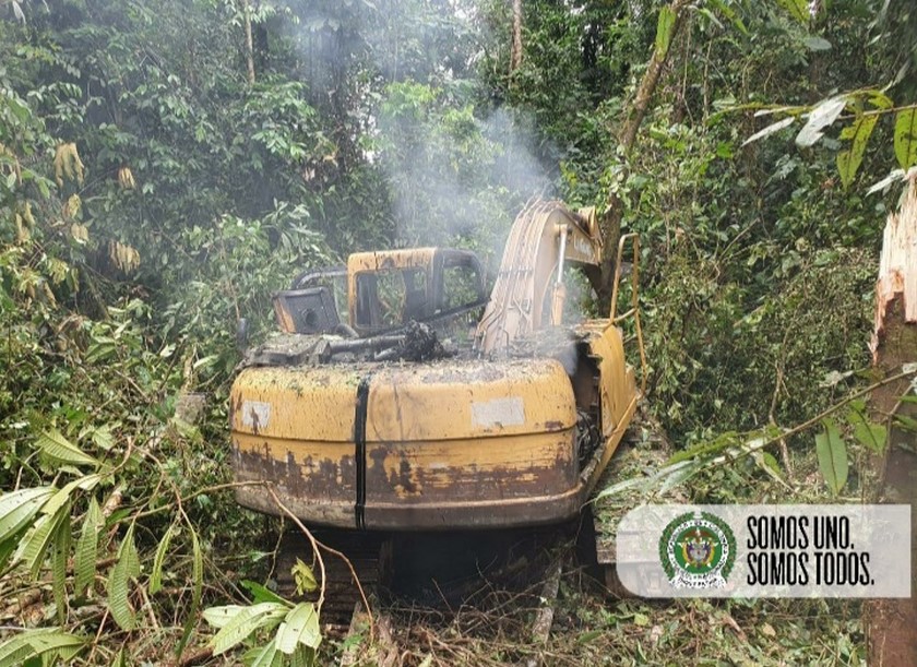 Dos retroexcavadoras y un motor, empleadas para minería ilegal en Chocó, fueron destruidas en el municipio de Unión Panamericana en el marco de la estrategia de intervención de la Policía contra este delito, junto al Ejército y la Fiscalía.