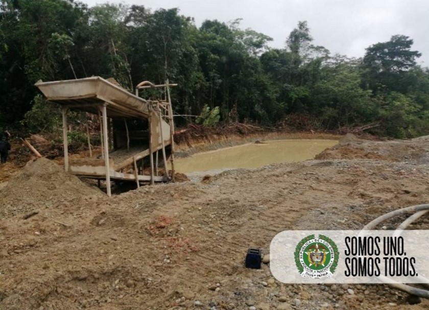 La operación se desarrolló en el municipio de Unión Panamericana por la Sijín con apoyo del Ejército, quienes evidenciaron en el sitio un entable minero con maquinaria utilizada para la actividad ilícita.