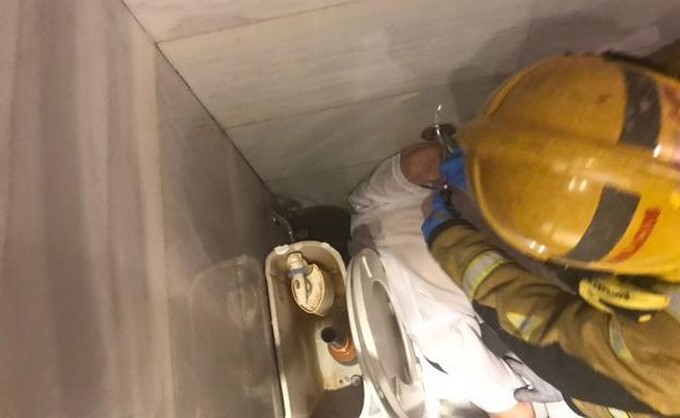 En Alicante (España) un hombre debió ser rescatado por los bomberos, luego de quedar atrapado entre un inodoro y la pared.