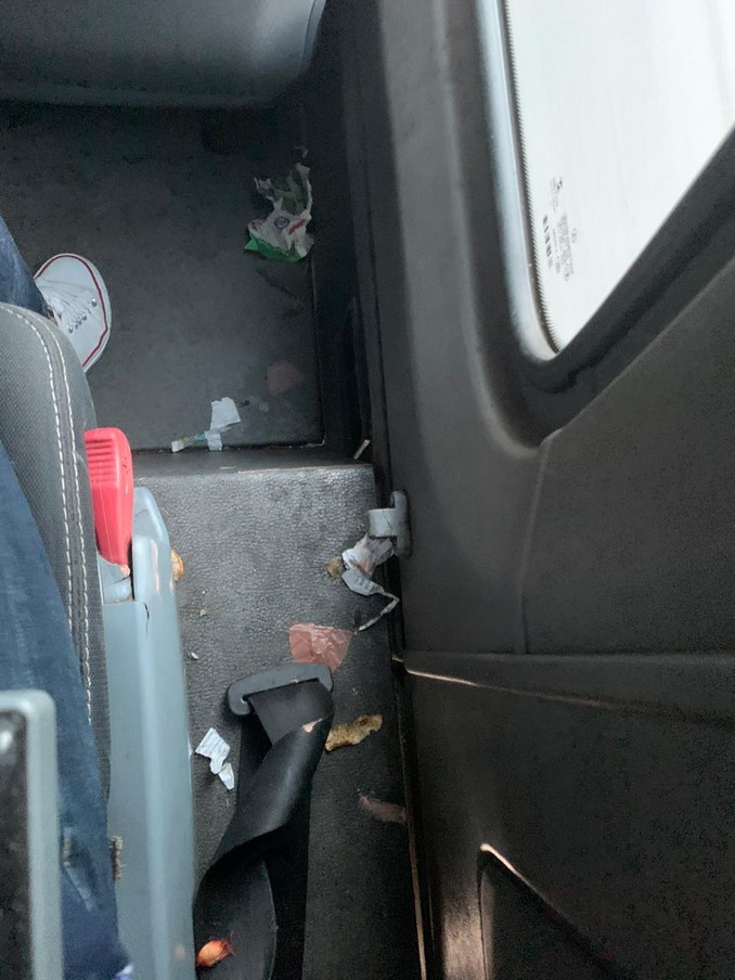 Fotos: Botellas plásticas, vómitos y hasta latas de cerveza, encontró una turista en bus colombiano