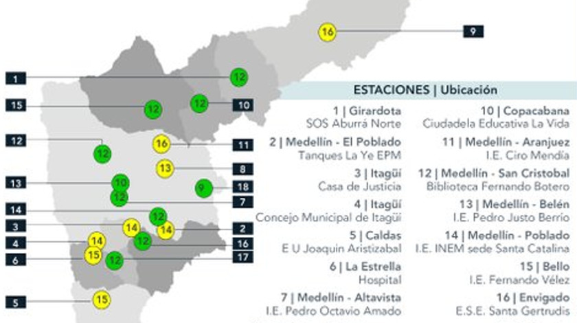 Cabe resaltar que el pasado sábado tan solo un medidor estuvo en verde mientras que los demás estuvieron en amarillo, lo que muchos han atribuido a los incendios forestales que hay en el país, ya que en Medellín se ha evidenciado la notable disminución de vehículos en las calles durante la cuarentena.
