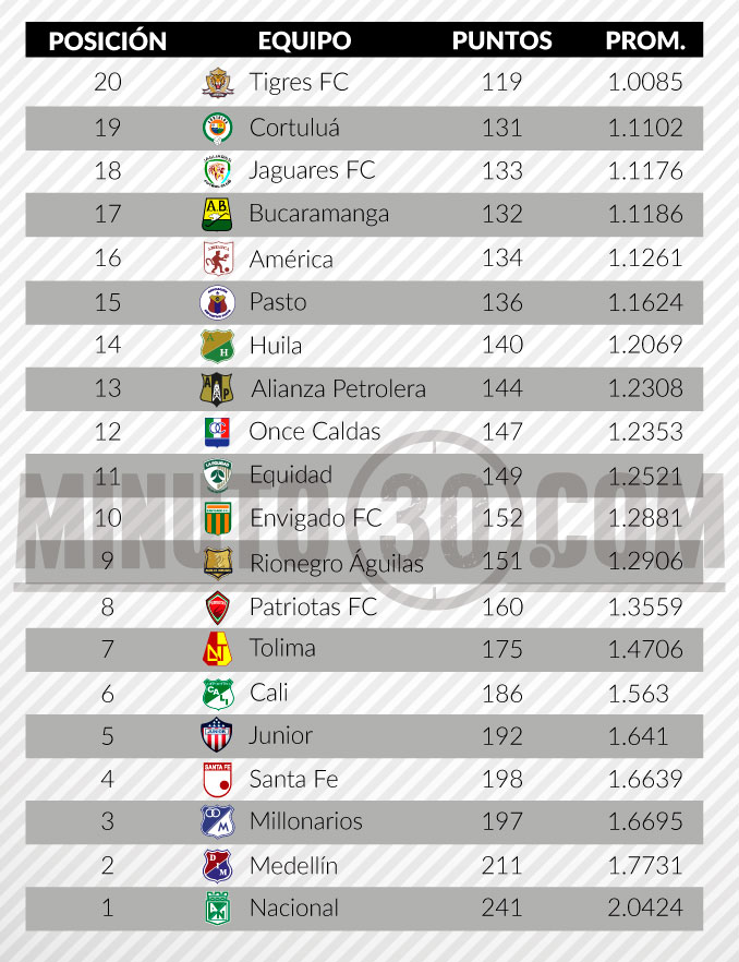 La tabla del descenso de la Liga colombiana está a punto de ser mirada por última vez, pues a Tigres de Bogotá se le debe sumar el último elegido para la B en pocos días.