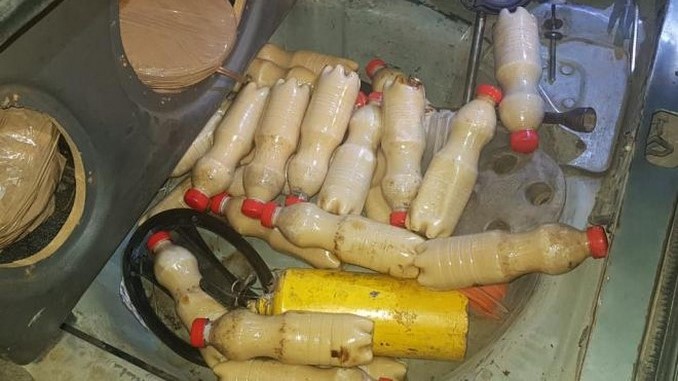 El resultado permitió la incautación de 128 kilos de base de coca, que estaban camufladas en los tanques de combustible de tres vehículos particulares y una motocicleta, envasados en tarros.