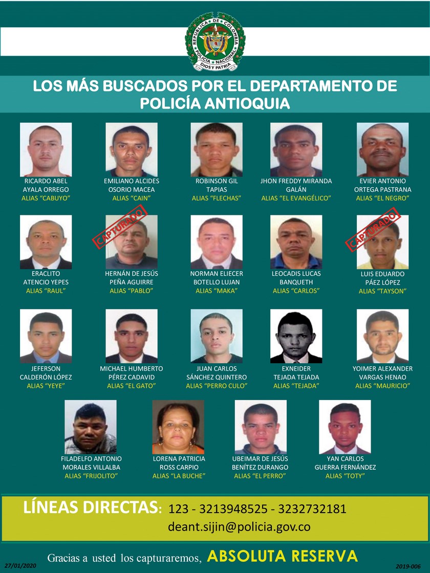 La Policía Antioquia capturó en la ciudad de Montería, Córdoba, a Herán Jesús Peña Aguirre conocido en el mundo delincuencial como alias “Pablo” uno de los más buscados en el Departamento de Antioquia. “Pablo” es requerido por la justicia por los delitos de extorsión, desplazamiento forzado tráfico de estupefacientes, tráfico de armas de fuego y […]
