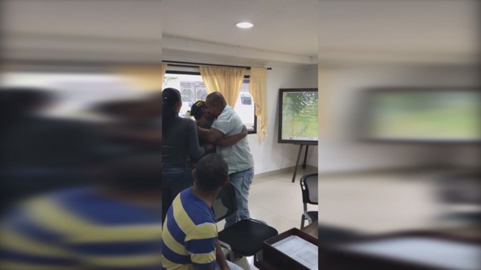 Reencuentro de la víctima con su familia. Foto: Departamento de Policía Antioquia.