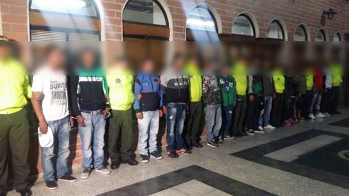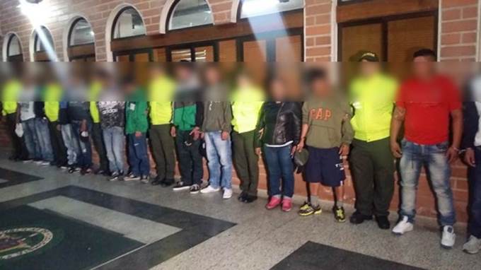 En 8 diligencias de allanamiento adelantadas en los barrios Carpinelo y Carambolas, nororiente de la ciudad, fueron capturadas 21 personas integrantes del grupo de delincuencia común “mondongo o la 100” subordinados al grupo de delincuencia común organizada “san pablo” dentro los cuales se encuentran alias “tuto”, alias “cachetes”, alias “macuin”, alias “nibermazo”, alias “mauro, alias “petete”, alias “emilsen”, alias “carlos”, alias “el ciego”, alias “la chinga”, alias ”iván” y alias “chumilo” entre otros; quienes son solicitados por un juzgado penal municipal con función de control de garantías de la ciudad de Medellín, por los delitos de homicidio agravado, concierto para delinquir con fines de homicidio, tortura y desplazamiento forzado.