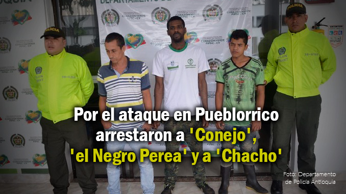 El tercer capturado es Walter Adrián Muñoz Montoya, alias ‘Conejo’, un desmovilizado de las AUC, residente en Pueblorrico y quien, al parecer, era el encargado de realizar inteligencia para avisar a sus cómplices del momento en el que la patrulla policial se dirigía al lugar del ataque.