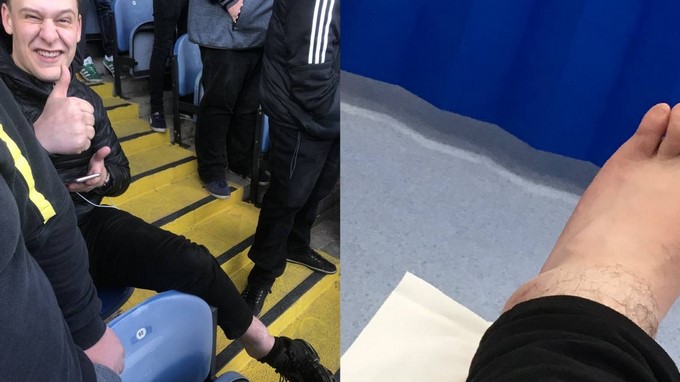 Un fanático del Leeds hace las delicias de internet luego de mostrarse con el tobillo totalmente roto durante el encuentro que su equipo le ganó al Sheffield Wednesday por 1-0, y que lo deja aún en carrera para lograr el ascenso en Inglaterra.