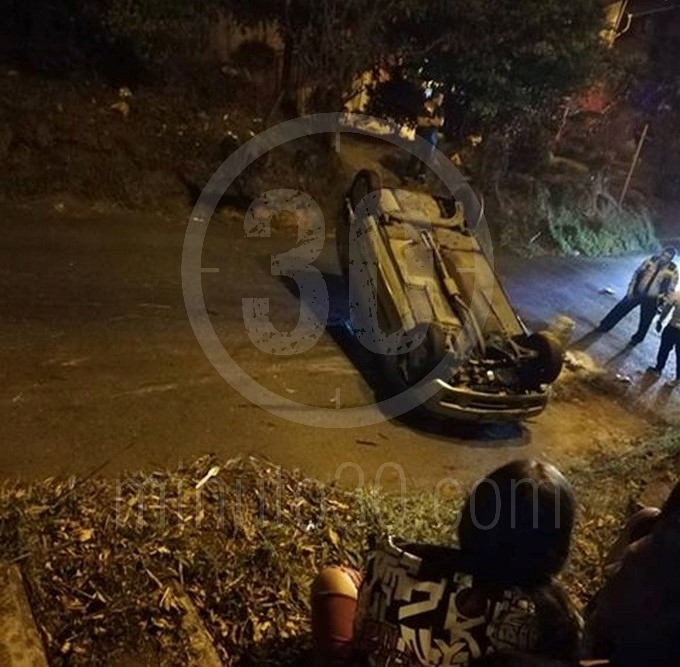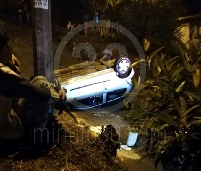 Según detallaron los testigos del accidente para Minuto30 el vehículo marca Twingo, perdió el control cuando bajaba por la inclinada vía e impactó contra dos motocicletas, para volcarse finalmente.
