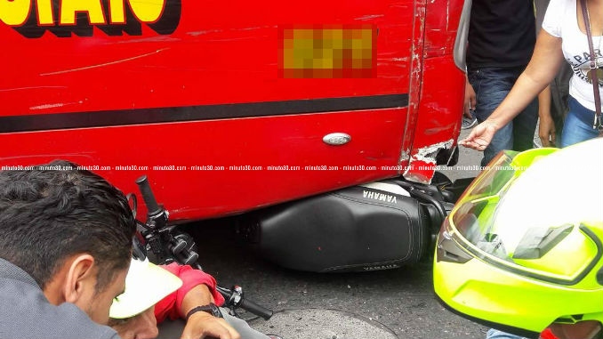Según testigos del hecho, uno de los buses al parecer frenó de manera intempestiva, lo que produjo que el segundo también lo hiciera y que el motociclista colisionara la parte trasera del automotor.
