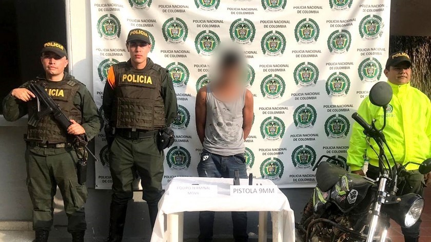 Fueron capturados dos sujetos conocidos como el ‘Flaco’ y ‘Helen’, quienes según informaciones, al parecer, serían las personas que el pasado 25 del presente mes, habrían participado en el homicidio a un ciudadano en el municipio de El Bagre, en la modalidad de sicariato. Al momento de la captura se les incautó una granada de fragmentación IM 26.
