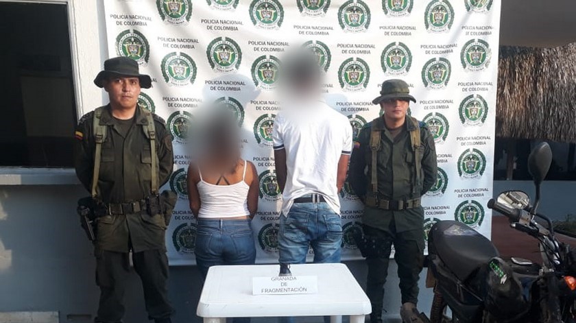 Fueron capturados dos sujetos conocidos como el ‘Flaco’ y ‘Helen’, quienes según informaciones, al parecer, serían las personas que el pasado 25 del presente mes, habrían participado en el homicidio a un ciudadano en el municipio de El Bagre, en la modalidad de sicariato. Al momento de la captura se les incautó una granada de fragmentación IM 26.