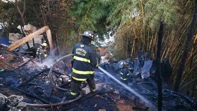 Cuatro viviendas de madera fueron arrasadas por el fuego. Cinco máquinas de bomberos atendieron la emergencia con un total de 25 hombres.