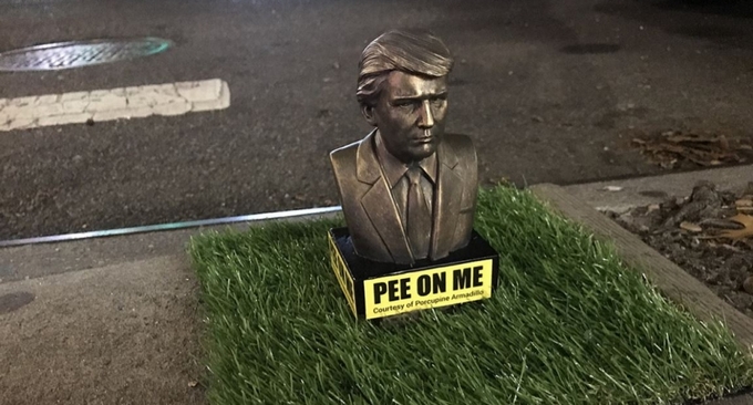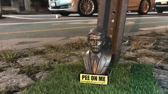 Cinco curiosas estatuas del presidente de Estados Unidos, Donald Trump, aparecieron en el parque Slope de la ciudad de Nueva York, aunque para desgracia del mandatario el objetivo de estas es demostrar el inconformismo con su gobierno, siendo diseñadas para que los perros puedan orinar en ellas.