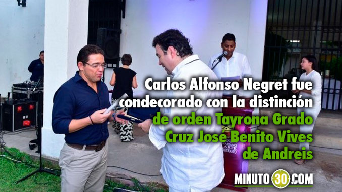 Minuto30.com-. Carlos Alfonso Negret Mosquera recibió las llaves de Santa Marta por parte del alcalde Rafael Martínez, y fue declarado huésped ilustre por su primer año como defensor del Pueblo de Colombia. También fue condecorado con la distinción de orden Tayrona Grado Cruz José Benito Vives de Andreis.